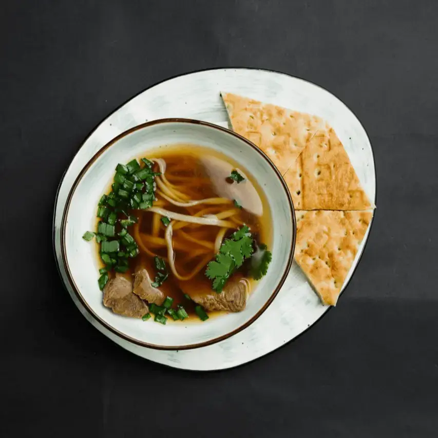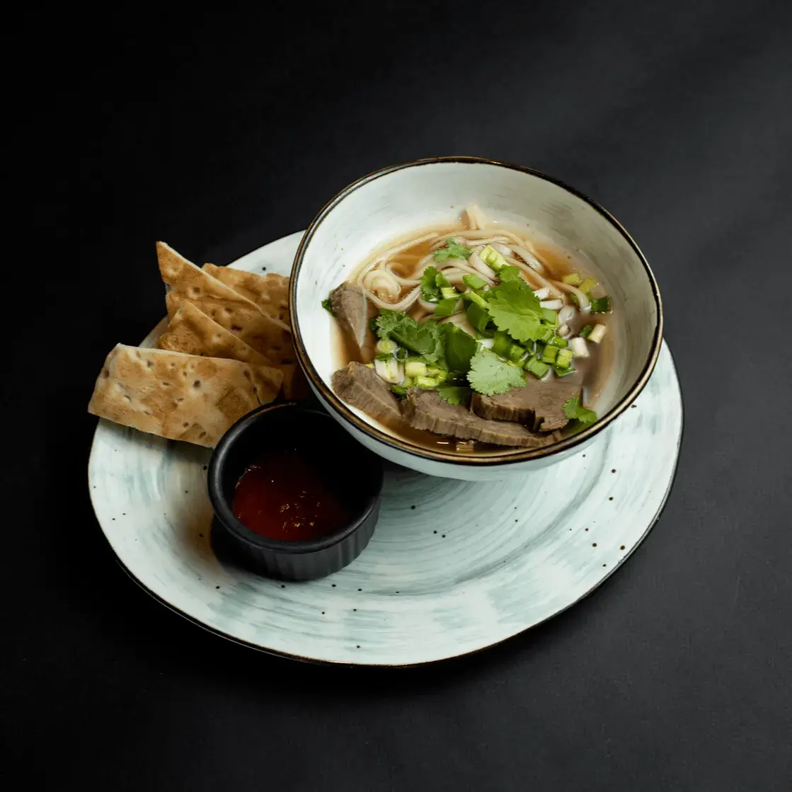 Вьетнамский суп, который состоит из рисовой лапши, мяса говядины, наваристого бульона и зелени. С Фо Бо подается перец чили, рисовый уксус и рыбный соус.