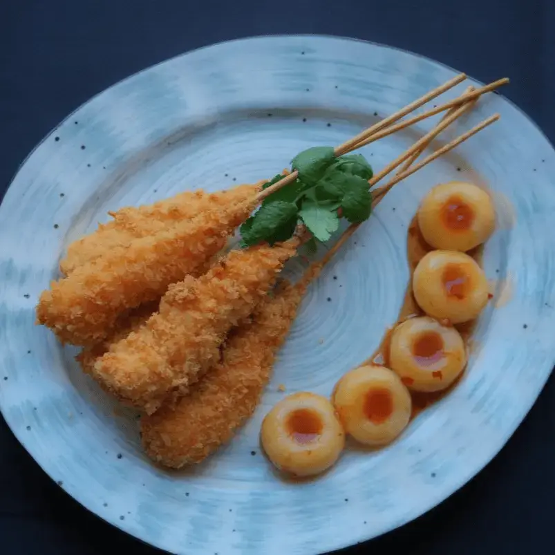 Каррэтоки из рисовой муки с креветками в густом остром соусе.