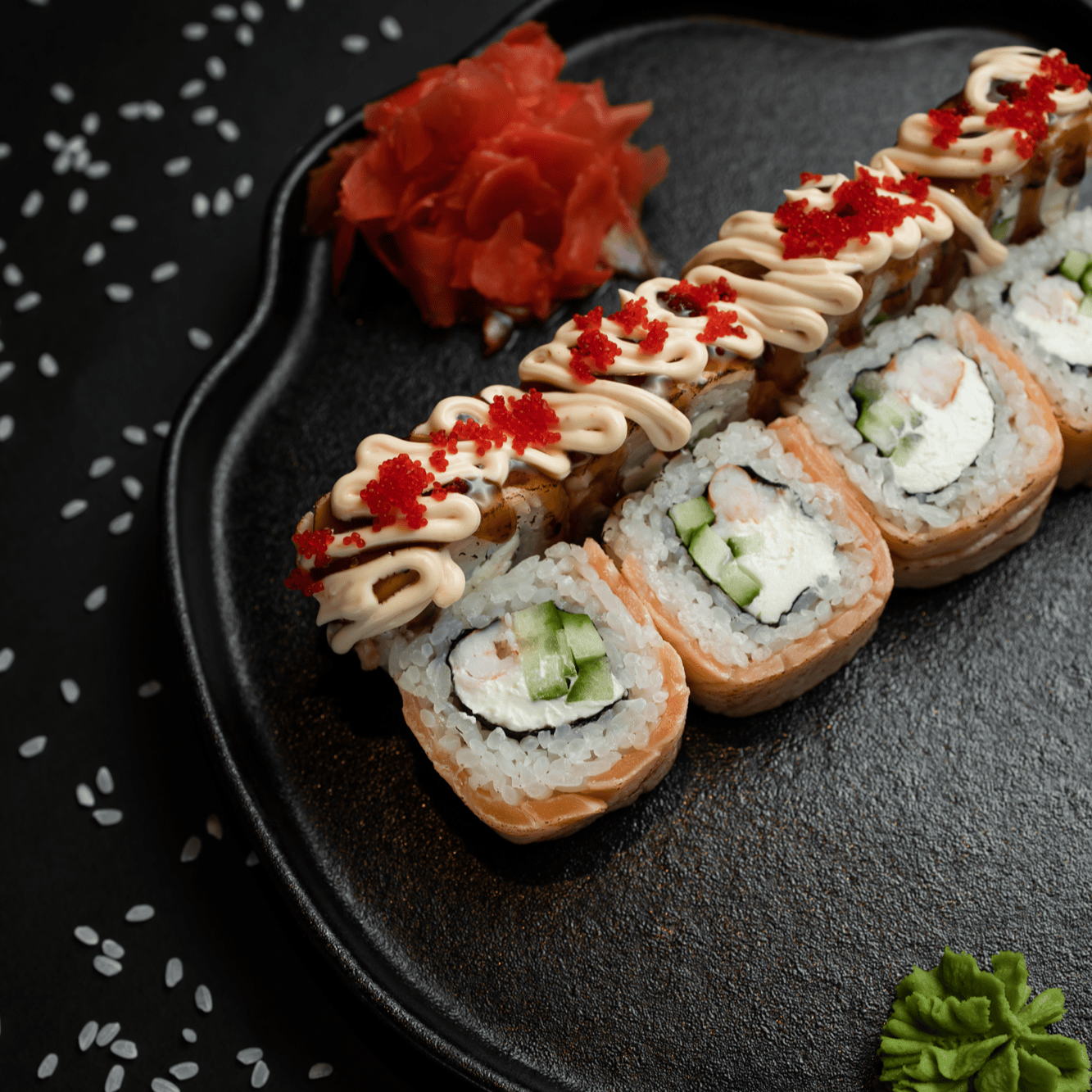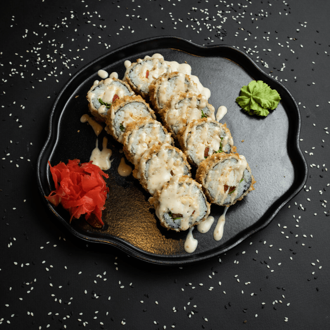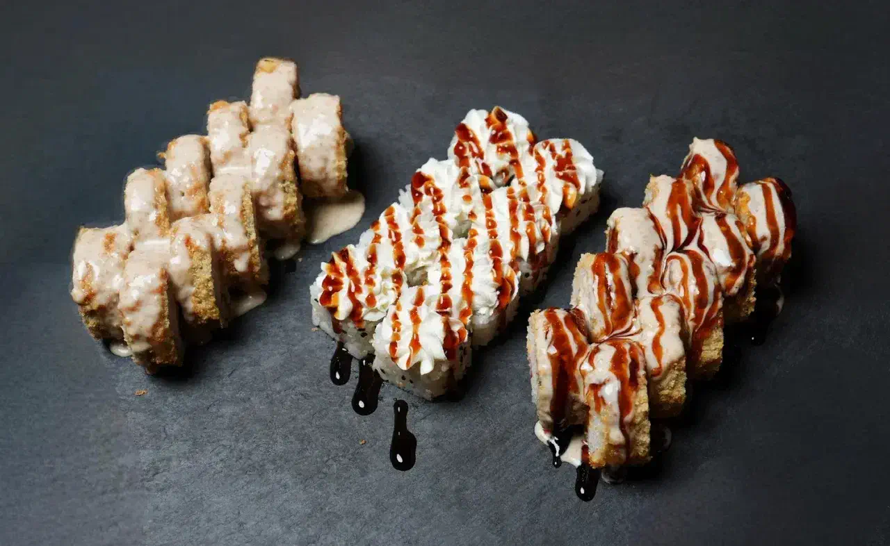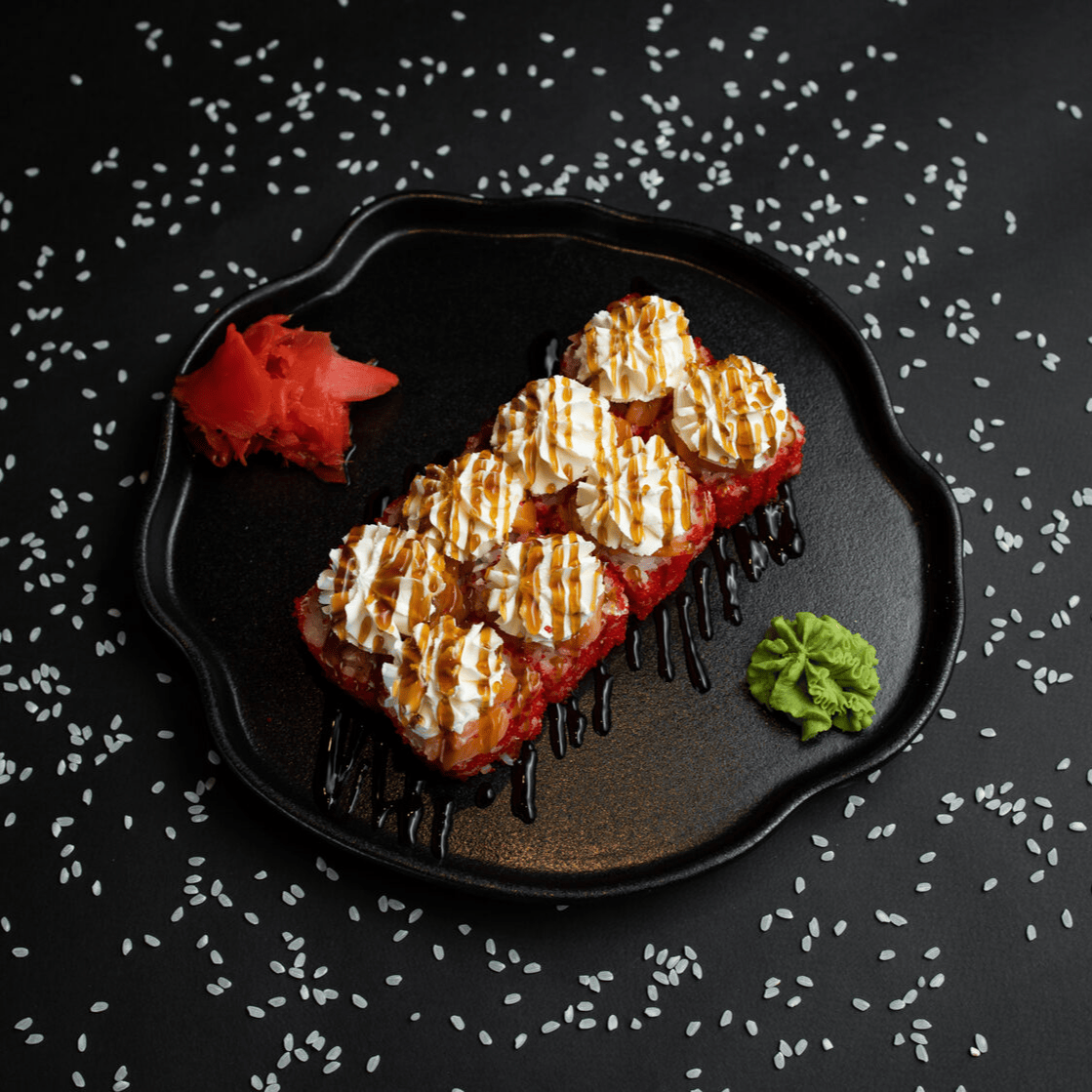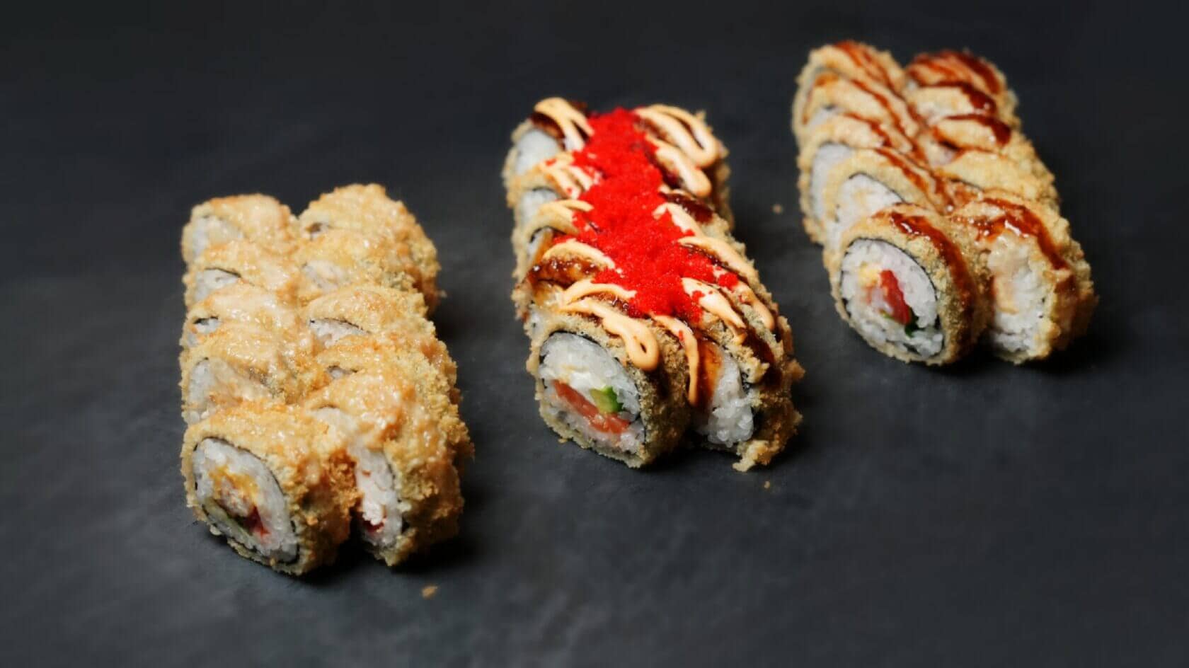 Филадельфия Ча, Йонака с копченой курицей, Цезарь с курицей, Калифорния с креветкой, Токио запеченный с курицей, Калифорния с лососем, Узумаки запеченный с курицей и угрем, Горячий шик 68 штук / 2,5 кг