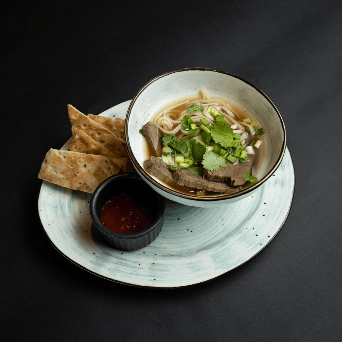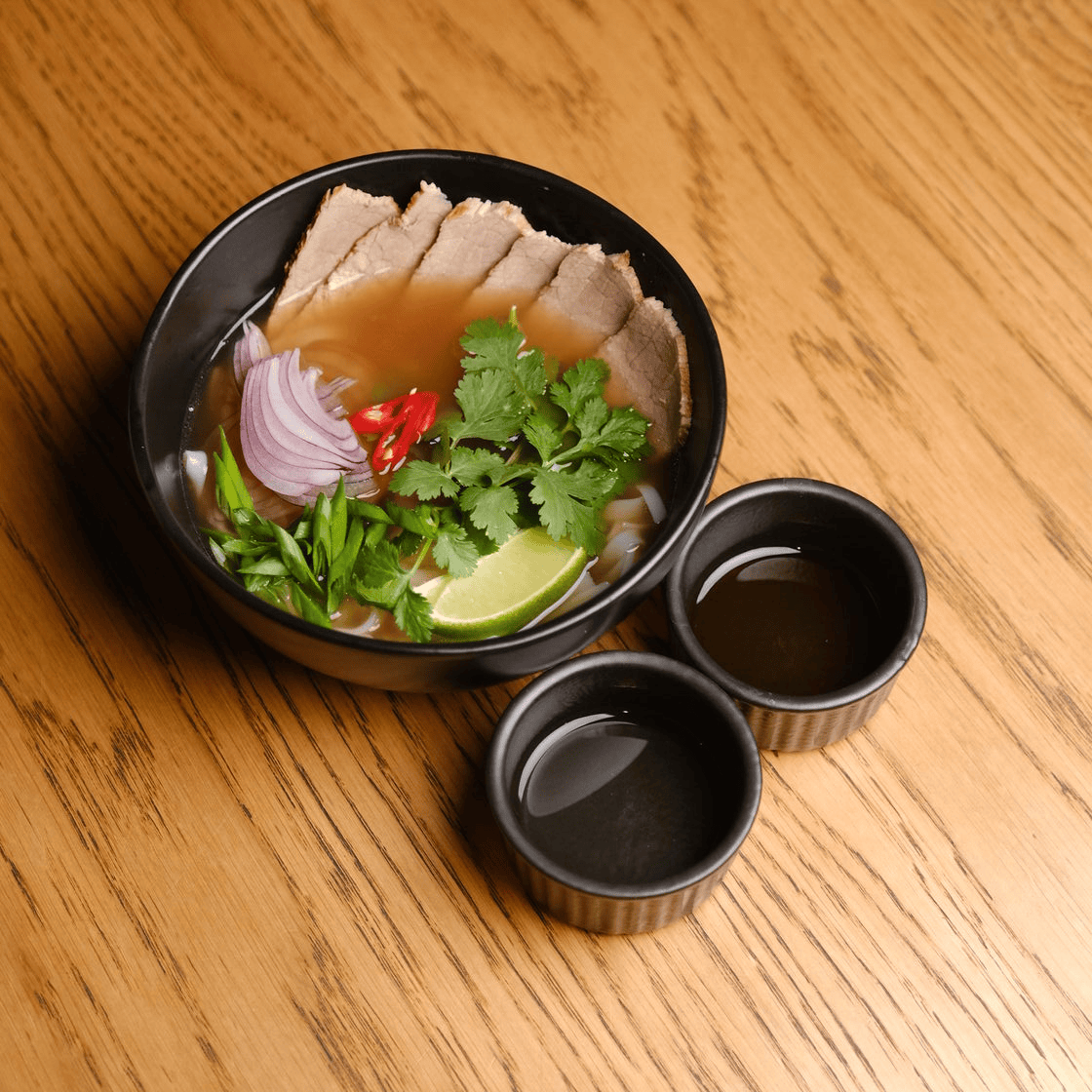 Вьетнамский суп, который состоит из рисовой лапши, мяса говядины, наваристого бульона и зелени. С Фо Бо подается перец чили, рисовый уксус и рыбный соус.