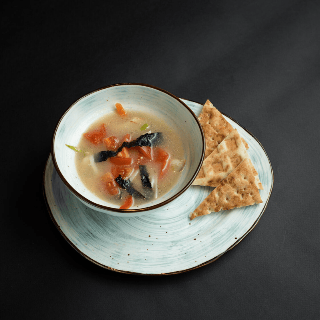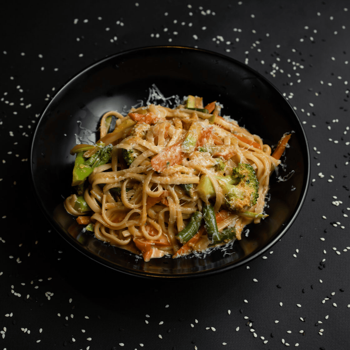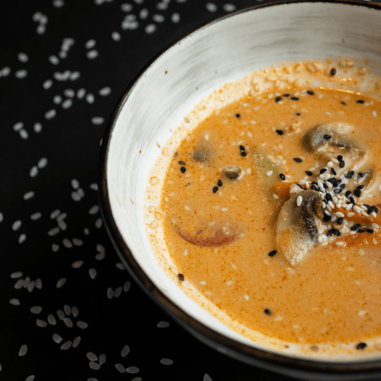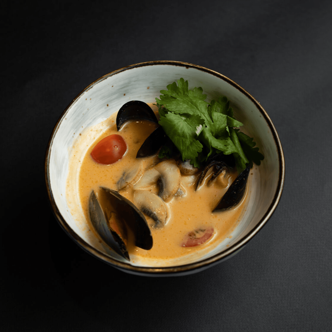 Насыщенный сырный бульон с лапшой, нежным цыпленком, хрустящими грибами эноками, кукурузой,зелёным луком,кунжутом и маринованном яйцом